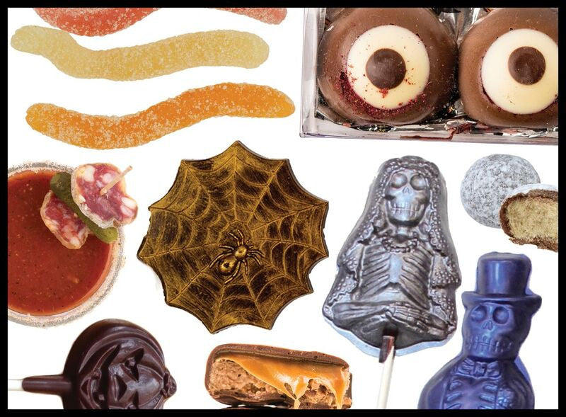 We’ve got scary good chocolate in festive shapes - Spider Webs, Chocolate Hazelnut Skulls and even Day of the Dead Pops (so beautiful you’ll freak). Spooktacular treats like PB&J Chocolate Eyeballs filled with French raspberry paté de fruit and salty-sweet peanut praline, solid dark chocolate Jack O'Lantern Chocolate Pops and fruity and tart Organic Gummy Worms (last we checked, artificial does NOT = delicious).