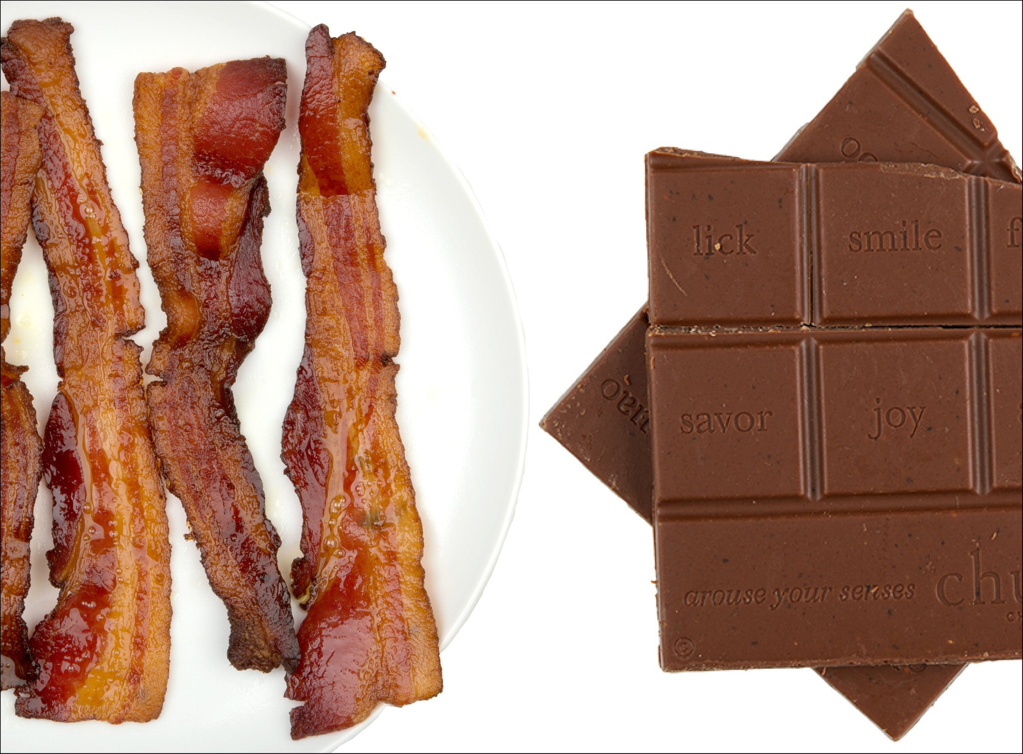 We could wax poetic about how great chocolate and bacon are together, how the salty, fatty bacon perfectly complements cacao’s rich, bitter, fruity smoothness. But that would take time, and we’re not about to stand in the way of you getting your fix.