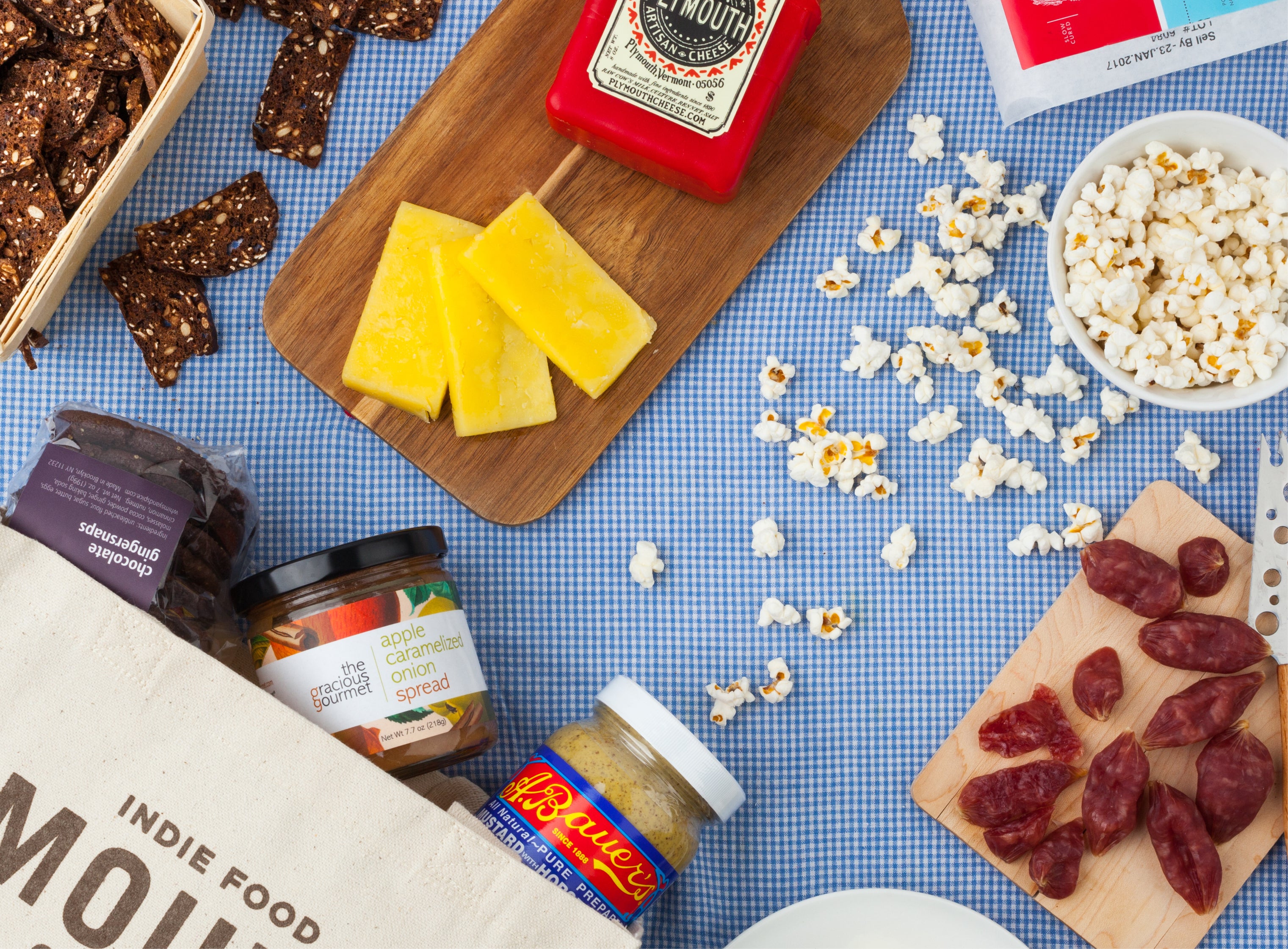 Box is the new basket! Our Picnic in a Box comes packed with salt and pepper pistachios, hearty crisps and flatbreads, savory spreads, raw cheddar cheese and a game-changing salami flecked with black truffle. For more picnic-ready deliciousness, check out the Cheese Board Meating Box, which comes complete with a slate cutting board. Pic-chic!