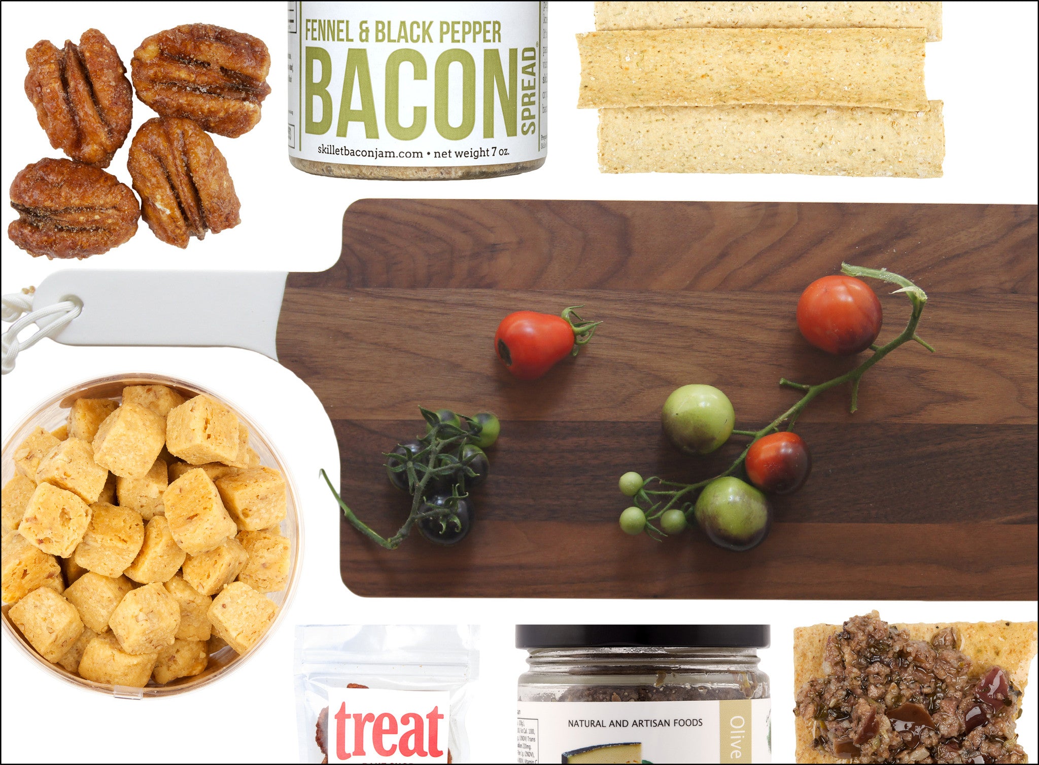 Need to throw together a great spread without much time to prepare? No worries, because you've got bacon jam (yes) and fruity, savory-sweet Fig and Olive Tapenade, plus sturdy, whole grain and herb Rosemary and Lemon Crackers to spread them on. Thick, buttery medallions of Savory Cheese Coins (made with aged Gruyére and sharp Cheddar cheese, yum) and a bag of crunchy, addictive Spiced Candied Pecans round out all your wildest noshing fantasies.