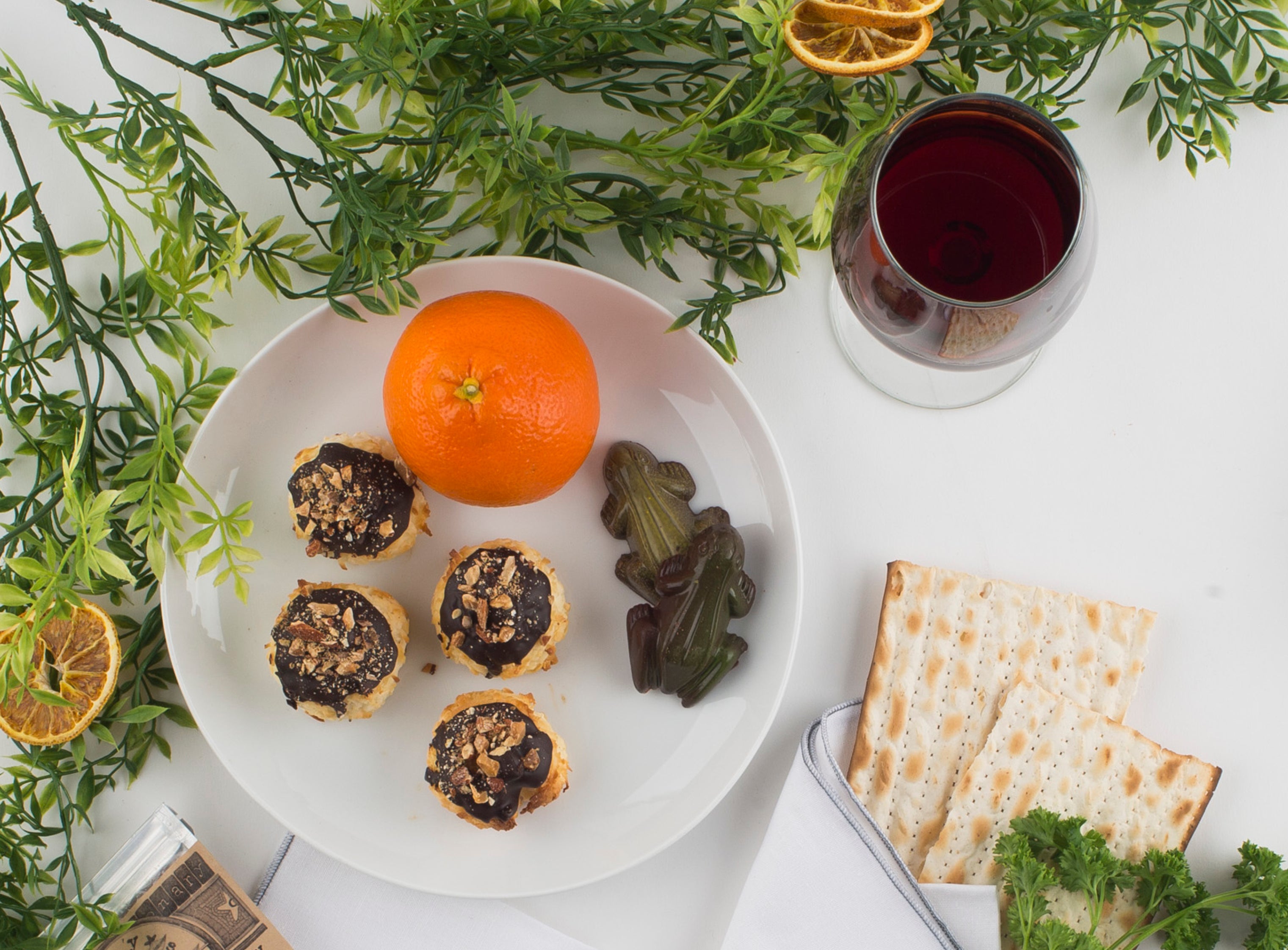 Make the table even more modern and festive by setting out these stunning chocolate kermies at each place setting. Yes, the 2nd plague is now our favorite Passover treat. Don’t forget a set for Elijah and Miriam! (They can share, but make sure they each get their own cup of wine.)