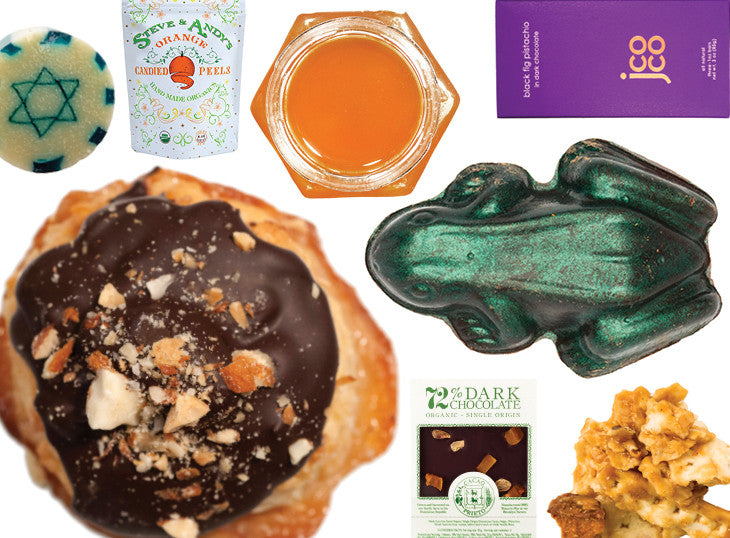 Start with our newest addictive goodie from Roni-Sue Chocolates – just for us, she created a charoset-inspired, matzah caramelized apple toffee crunch, studded with walnuts. (You'll want to eat it year-round.) Delicious green-dusted solid chocolate kermies to brighten up the seder table. The best macaroons we've ever tasted. A nutty and fruity dark chocolate bar. Plus, chai-flavored candies decorated with the Star of David and the Hebrew word for chai. It’s a literal chai five. Zissen Pesach!